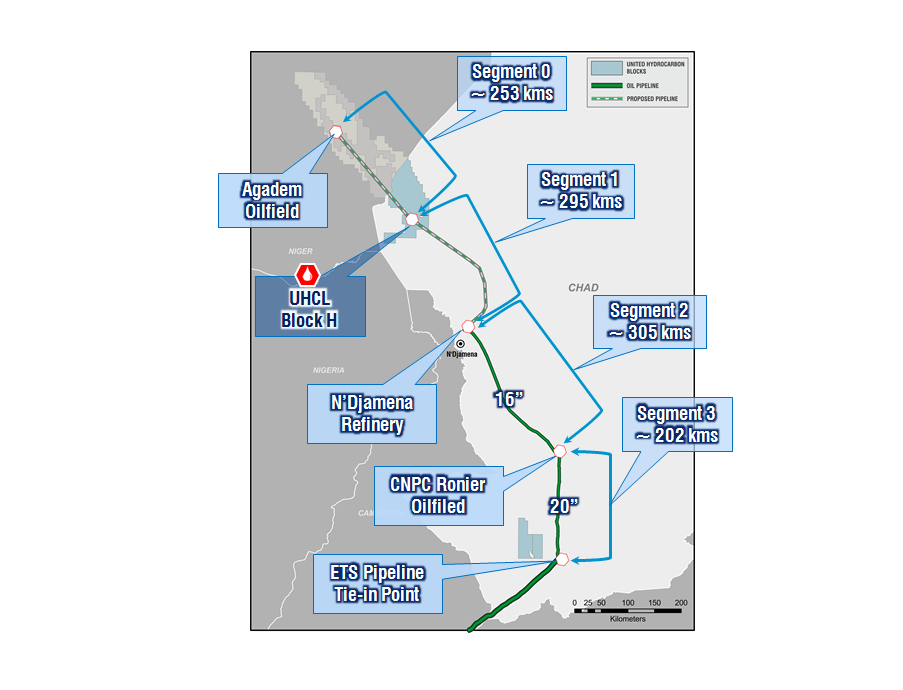 The proposed NOTCO (Niger-Chad) pipeline from Agadem in Niger to Chad will route directly through Block H